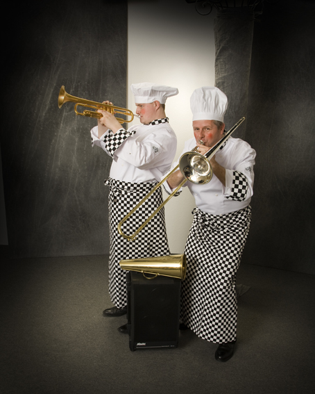 Lekkere swingende dixieland in een krokant jasje gespeeld door twee Chef’s de Cuisine. Ideaal voor het opluisteren van uw diner, winkelcentrum, buurtbarbecue, tuinfeest, wijnproeverij, Culinair-Event, lopend buffet, stilstaand buffet, … noem maar op! Het smaakt altijd naar meer.