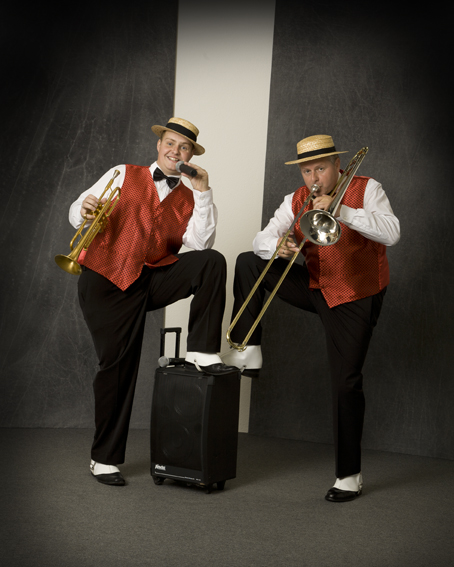 Twee muzikanten spelen en zingen de gezelligste dixieland en herkenbare nummers van bijvoorbeeld André Hazes, Eddy Christiani, Nico Haak, Duke Ellington en Louis Armstrong. Het geheim van dit duo bevindt zich in een mysterieus mobiel geluidskastje waarin een compleet begeleidingsorkest verstopt zit.