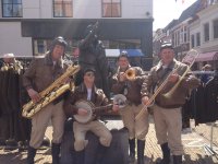 Van glimmend zilver is de outfit die de heren dragen. Zilver is de kleur voor een keurig feest maar springt ook in het oog voor bijvoorbeeld een chique gastenontvangst of receptie. Zie daarbij de gepoetste schoenen en instrumenten … de McDixie Brothers zijn in hun element. Dit duo glimt u tegemoet!
