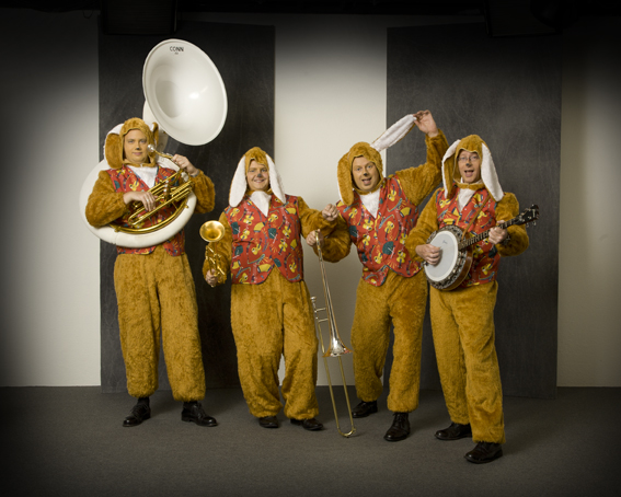 Paashazen om te knuffelen spelen heerlijke dixieland, zingen en vermaken het publiek. Eitjes uitdelen? Geen probleem voor deze ervaren dixieland paashazen! In een groen, groen, groen, groen, knolle-knolle-land, daar spelen de hazen heel parmant. Maar ook op feesten in de tuin, feesten op school, feesten in de stad, feesten in het bedrijf en feesten bij u thuis. Hilarisch toch? Die paashazen op uw feest?