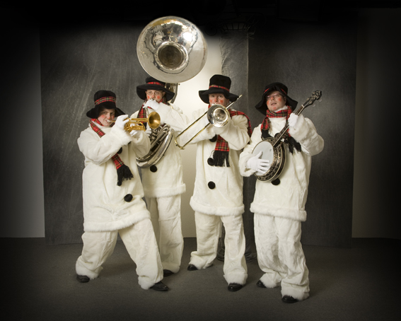 Deze ijs- en ijskoude Dixieland Sneeuwpoppen lopen door uw winkelcentrum of over uw kerstmarkt of het een lieve lust is. Ze spelen en zingen liederen als Frosty the Snowman, I'm Dreaming of a White Christmas en Jingle Bells.
