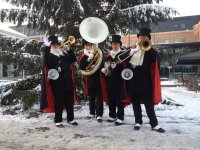 Van glimmend zilver is de outfit die de heren dragen. Zilver is de kleur voor een keurig feest maar springt ook in het oog voor bijvoorbeeld uw promotour. Zie daarbij de gepoetste schoenen en instrumenten … de heren van McDixie zijn in hun element. Dit orkest glimt u tegemoet!